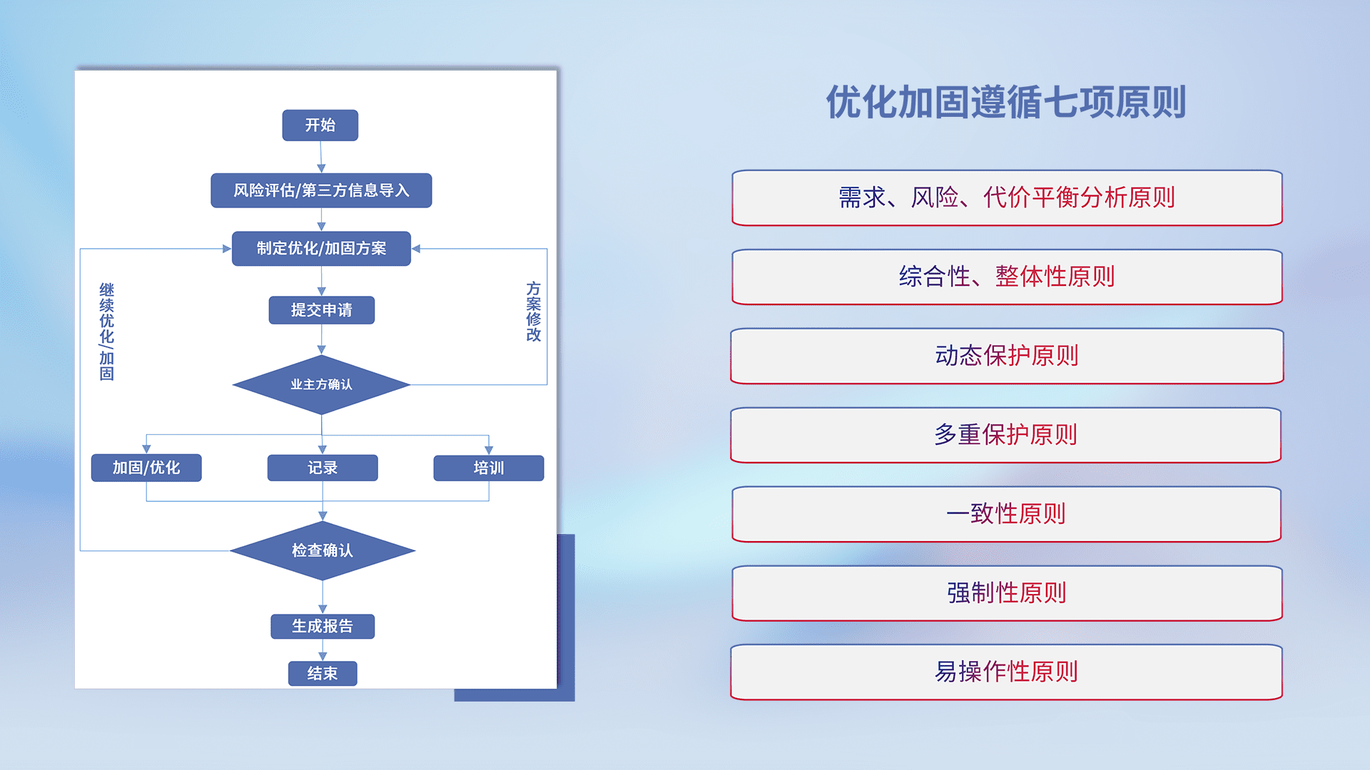 最大程度利用现有资产,,对评估发现的问题进行封堵与整改,,防止漏洞被利用,,提升整体网络安全性,,,,为客户带来高标准的优化加固服务。。